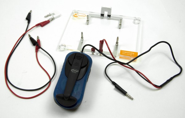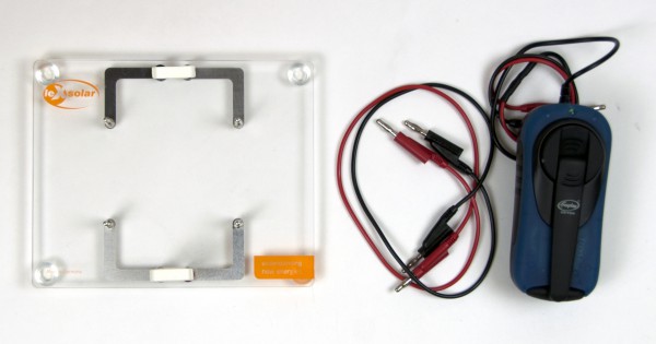 For experimenting with the leXsolar basics in elementary school you need the leXsolar-Minkit Basic. It contains a small base unit, cables and short circuit plugs to connect the modules. With a hand crank generator the students produce electrical energy for the experiments themselves. Thus, no extra electrical connection or voltage source is needed.